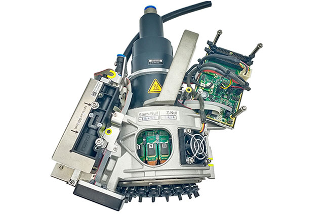 ASM西門子貼片機C&P20貼片頭的卓越性能,源于其多項精妙的工程設計。首先,其整體結構緊湊小巧,內部的星形軸被設計為傾斜朝向PCB平面。這種獨特的幾何構造使得多個貼裝段位器能夠密集排列在極小的空間內,從而顯著縮短了貼片頭的循環時間,直接提升了整機的貼裝產能。